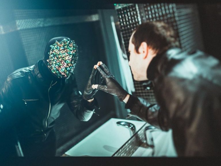 A l’image de cette dernière, on retrouve l’idée de personnage dans ses lives récent, où il incarne une forme de chimérique incarnation cauchemardesque (si, si) masquée qui vient littéralement faire corps avec les sons qui accompagnent son sinistre ballet.
